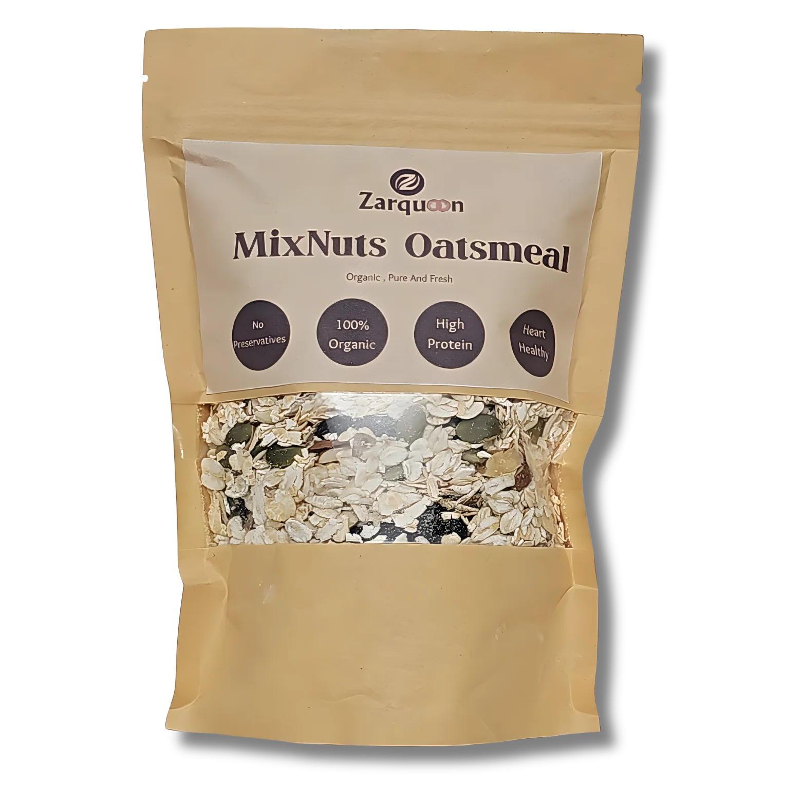 Fuel your mornings with Zarqoon MixNuts Oatmeal, a 100% organic, preservative-free mix crafted for health-conscious souls.