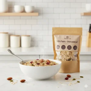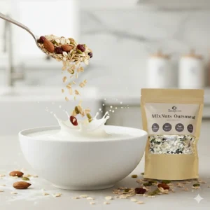MixNuts Oatmeal is your ultimate breakfast companion — a nourishing mix of rolled oats, premium nuts, and seeds designed to fuel your mornings with clean energy. Each serving deliversThis power-packed combination supports muscle recovery, enhances focus, and keeps you full longer. Its slow-digesting, fiber-rich oats help control cravings, making it one of the best options for weight loss and balanced energy.