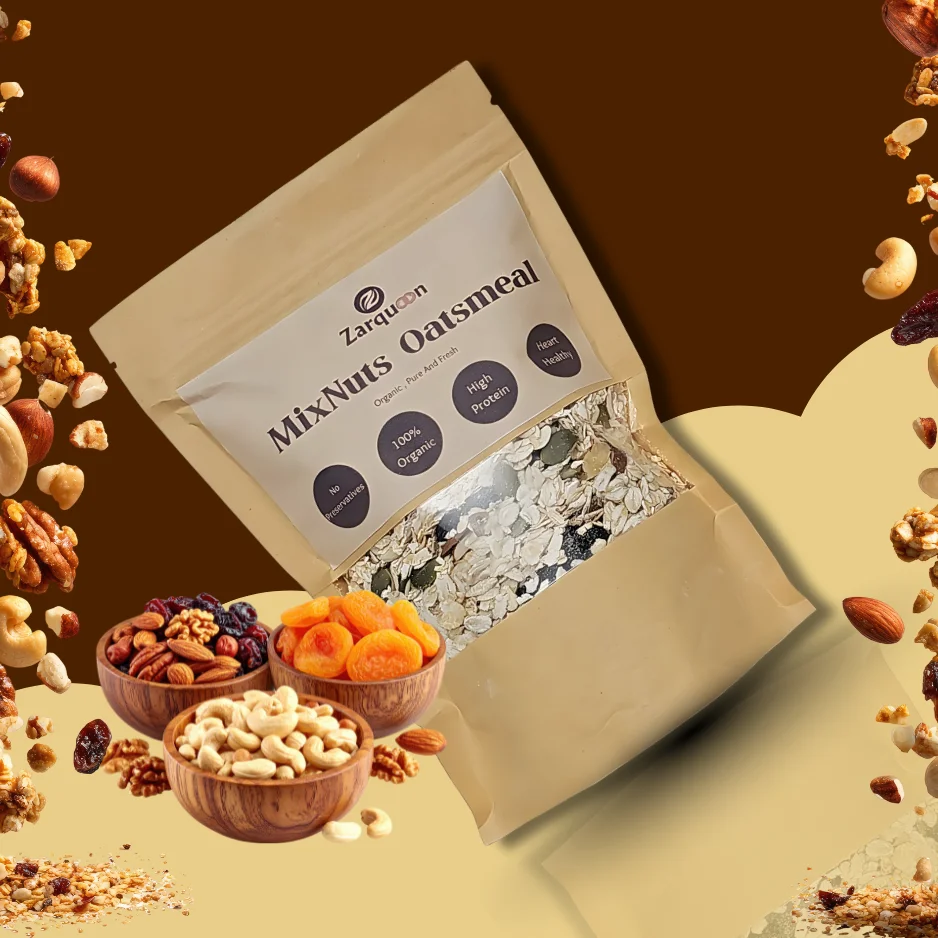 Fuel your mornings with Zarquoon MixNuts Oatmeal, a 100% organic, preservative-free mix crafted for health-conscious souls.